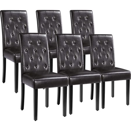 $100.00Set of 6?Button Tufted?Faux Leather Dining Chairs, Padded High Back Kitchen Chairs with Solid Wood Legs For Home, Restaurants, Cafe, Brown About this item: Low Maintenance: The water-resistant faux leather upholstery can be easily wiped clean with a damp rag and a few drops of cleaner, removing accidental spills easily.…