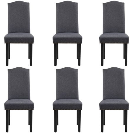 $54.00Classic Dining Chairs Set of 6 Fabric Upholstered Kitchen Chairs Tall Back Dining Room Side Chairs with Nailhead Trim Solid Wood Legs Dark Gray About this item ADJUSTABLE FEET CAPS: The front legs are designed with adjustable feet caps to keep the chairs height balance. Four protective pads on the…